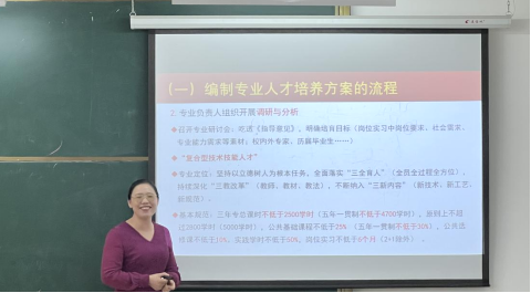 研讨会上,教务处处长蔡小莲从人才培养调研与分析、人才培养目标、课程体系建设、具体制(修)工作安排等方面对2024级人才培养方案作了详细介绍,进一步明确了此次方案制(修)订的要求及注意事项。她要求,本次人才培养方案制(修)订工作既要符合主管部门的要求,也要体现学校的育人特色。