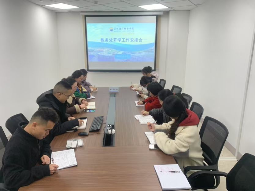2月14日下午,泉州海洋职业学院教务处组织召开新学期教学工作安排会,教务处全体人员参加会议。会议围绕学校发展目标,以提升教学质量为核心,对新学期重点工作进行了全面部署。教务处处长蔡小莲传达了泉州海洋职业学院2025年重点工作,并对本学期的工作做了要求部署。