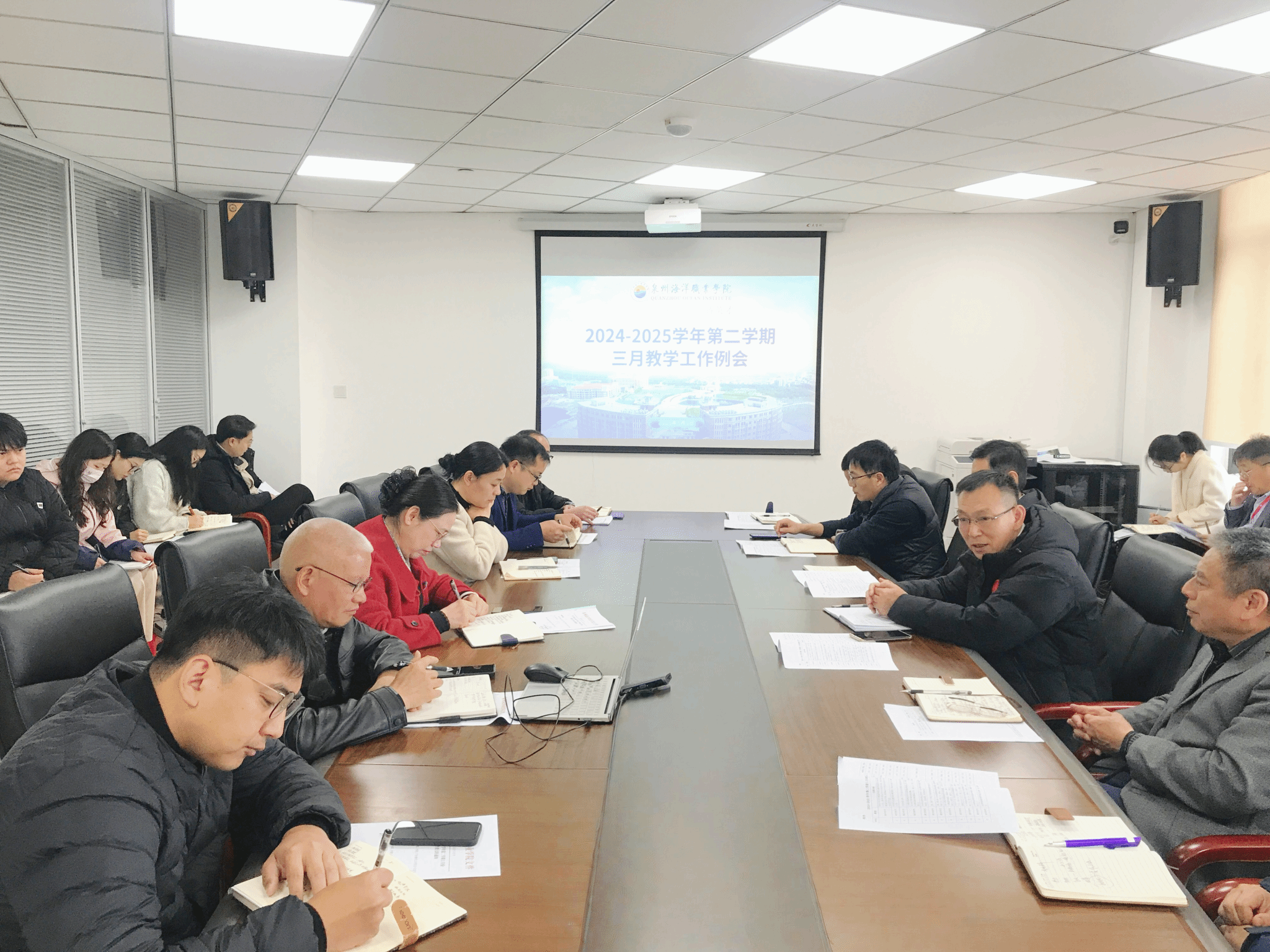 在会上,教务处对三月份的教学工作进行周密安排与部署,涵盖了教学研究、实验设备、教学运行、学籍管理以及实践教学等五大关键领域,详细规划了各项工作计划。教务处处长蔡小莲针对2025级人才培养方案的制定与修订、实训室建设、“五金”建设、教研教改活动、岗位实习及课堂管理等方面进行了深入补充。特别指出,岗位实习安全工作需得到全体教师的高度重视。