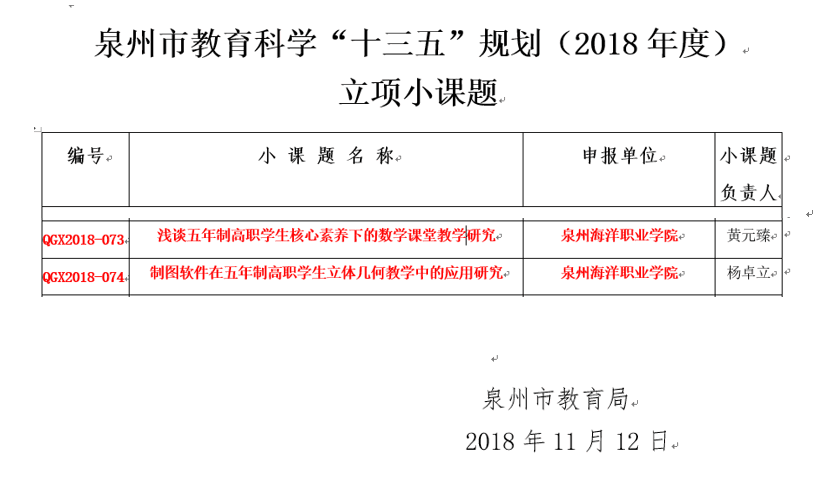 全文文件下载链接:泉州市教育局关于确认泉州市教育科学“十三五”规划(2018年度)立项小课题的通知