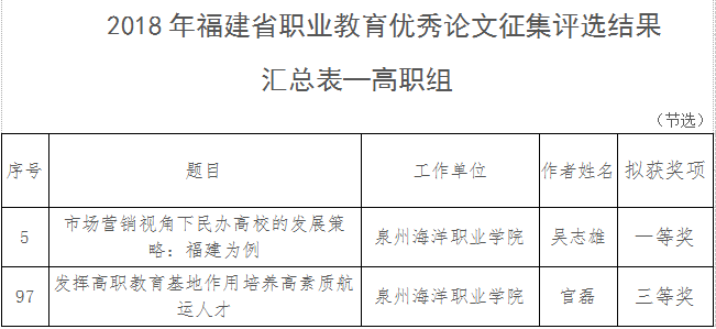 附件:《2018年福建省职业教育优秀论文征集评选结果汇总表—中、高职组》点击跳转