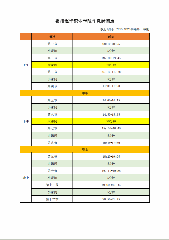2025-2026学年第一学期作息时间表