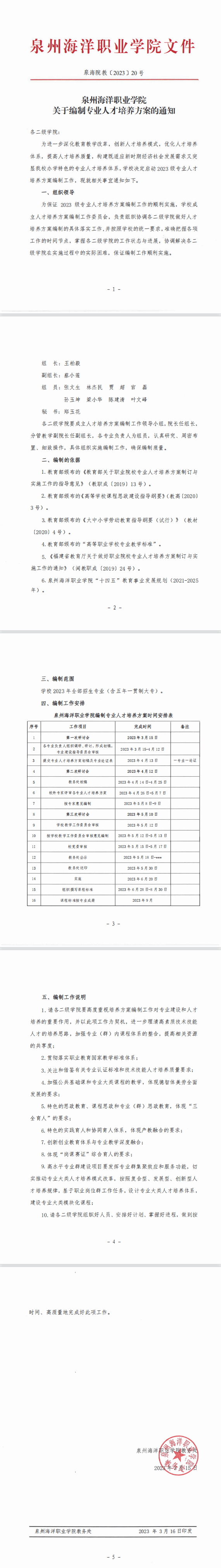 泉海院教〔2023〕20号 泉州海洋职业学院关于编制专业人才培养方案的通知