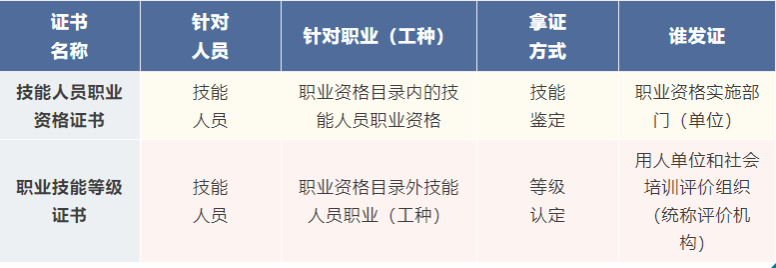 职业技能等级证书与技能人员职业资格证书有什么区别?