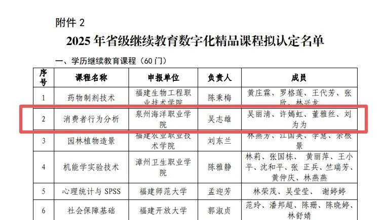 学校另有两门继续教育课程入选省级精品课程名单:经济管理学院吴志雄老师主持的《消费者行为分析》课程,以系统化的教学内容为基础,结合消费者行为领域的前沿理论与实践案例,运用数字化教学手段,构建了兼具理论深度与实践指导性的课程体系。信息工程学院郑文金老师主持的《网页设计与制作》课程,注重网页设计与制作的核心技能培养,通过数字化教学设计优化教学流程,融入项目式教学理念,有效提升了学员的实践操作能力与岗位适配能力。