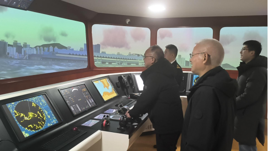 会后,在教育质量控制中心主任李国锋陪同下,屈教授参观了世界特种船舶展示厅、VLCC全任务轮机模拟器、海权红馆、360度视景全任务船舶操纵模拟器等特色场馆及项目。屈教授一路参观,一路称赞学校找准方向、真抓实干,为教育事业发展贡献了亮眼样本。