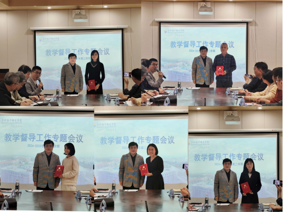 会议伊始,唐学学常务副校长为杨新彪、吴丽娇、张敏、刘为为、苏婷婷五位教师颁发“院级教学督导专员”聘书。