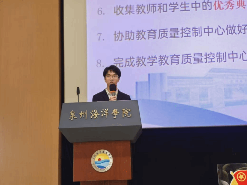 10月29日下午,2025-2026学年学生教学信息员培训会在泉州海洋职业学院图书馆二楼报告厅顺利召开。教育质量控制中心副主任谢家民出席并全程指导了培训会,2025年全体新聘学生教学信息员参加了此次培训会。