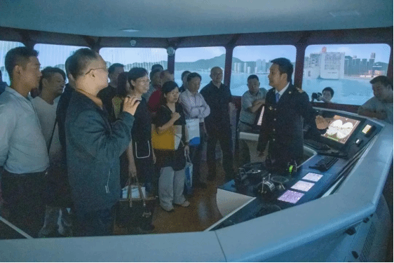 最后,与会嘉宾对学校国防科技馆、海权红馆、360度全视景船舶操纵模拟器等特色场馆进行了参观调研。