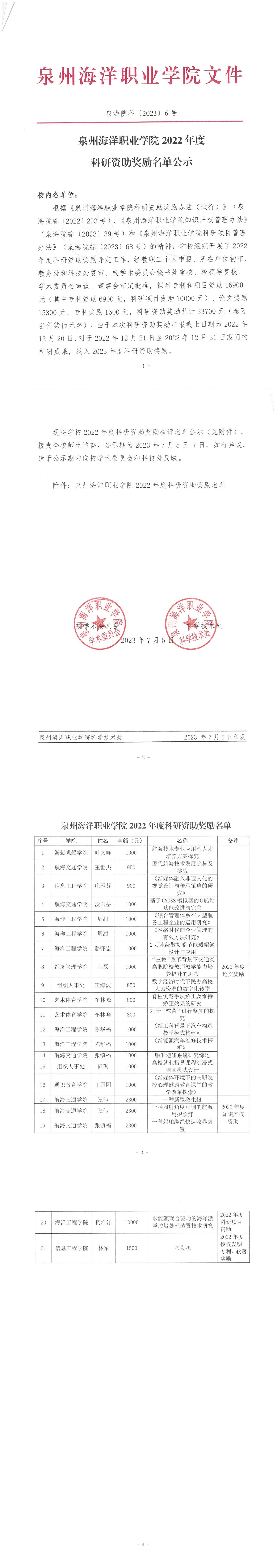 泉海院科〔2023〕6号 泉州海洋职业学院2022年度科研资助奖励名单公示.pdf