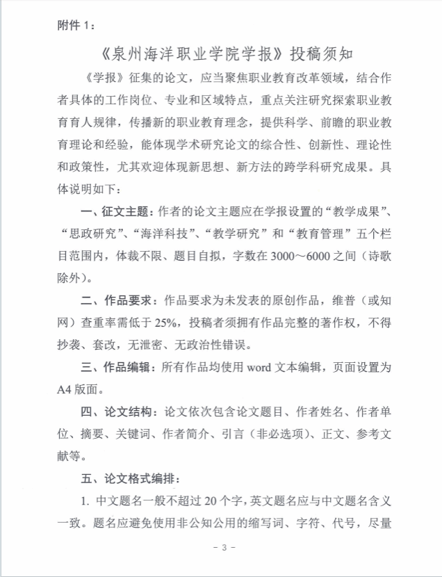 【征稿】泉海院科〔2024〕7号《泉州海洋职业学院学报》2024年第1期补充征稿的通知