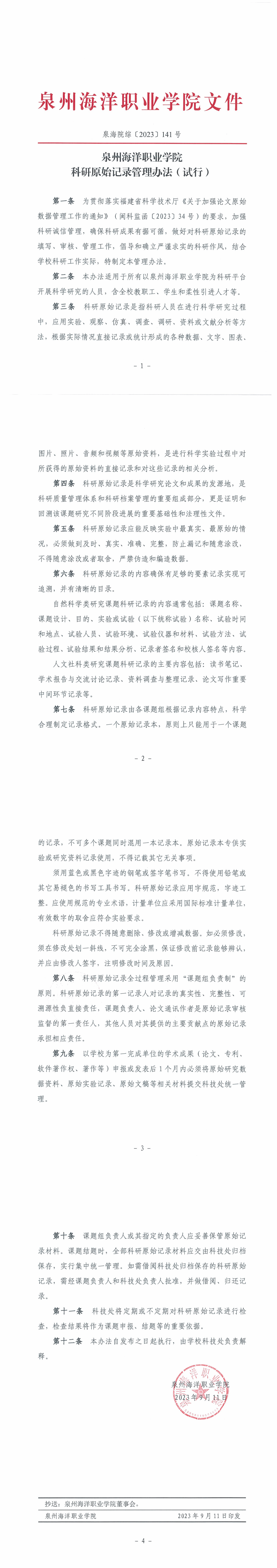 泉海院综〔2023〕141号 泉州海洋职业学院科研原始记录管理办法(试行).pdf