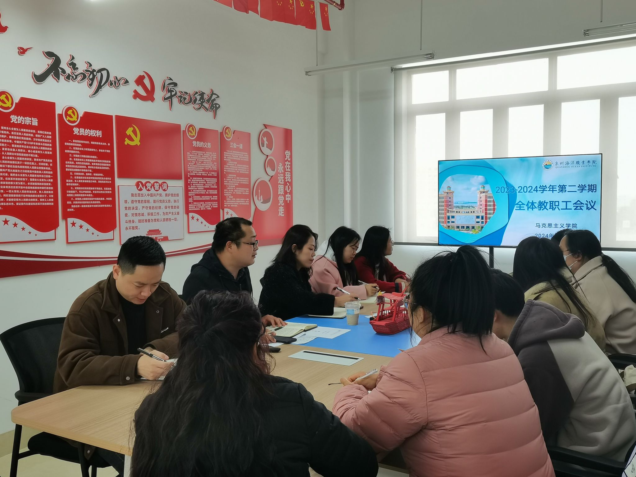 2024年2月26日,为深入贯彻党的教育方针,落实立德树人根本任务,理清新学期工作思路,进一步提高思政课教学质量,我院在图书馆4楼马院活动室召开本学期第一次全体教职工会议,会议由陈建清副院长主持。