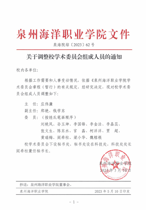 上一篇:关于调整泉州海洋职业学院学报编辑委员会成员的通知 泉海院综 {2023} 66号