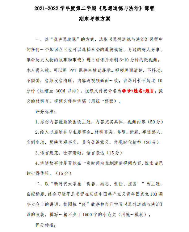 下一篇:2021-2022年度第二学期《毛泽东思想和中国特色社会主义理论体系概论》课程期末考核方案