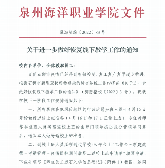 上一篇:关于做好“五一”假期学校疫情防控工作的通知
