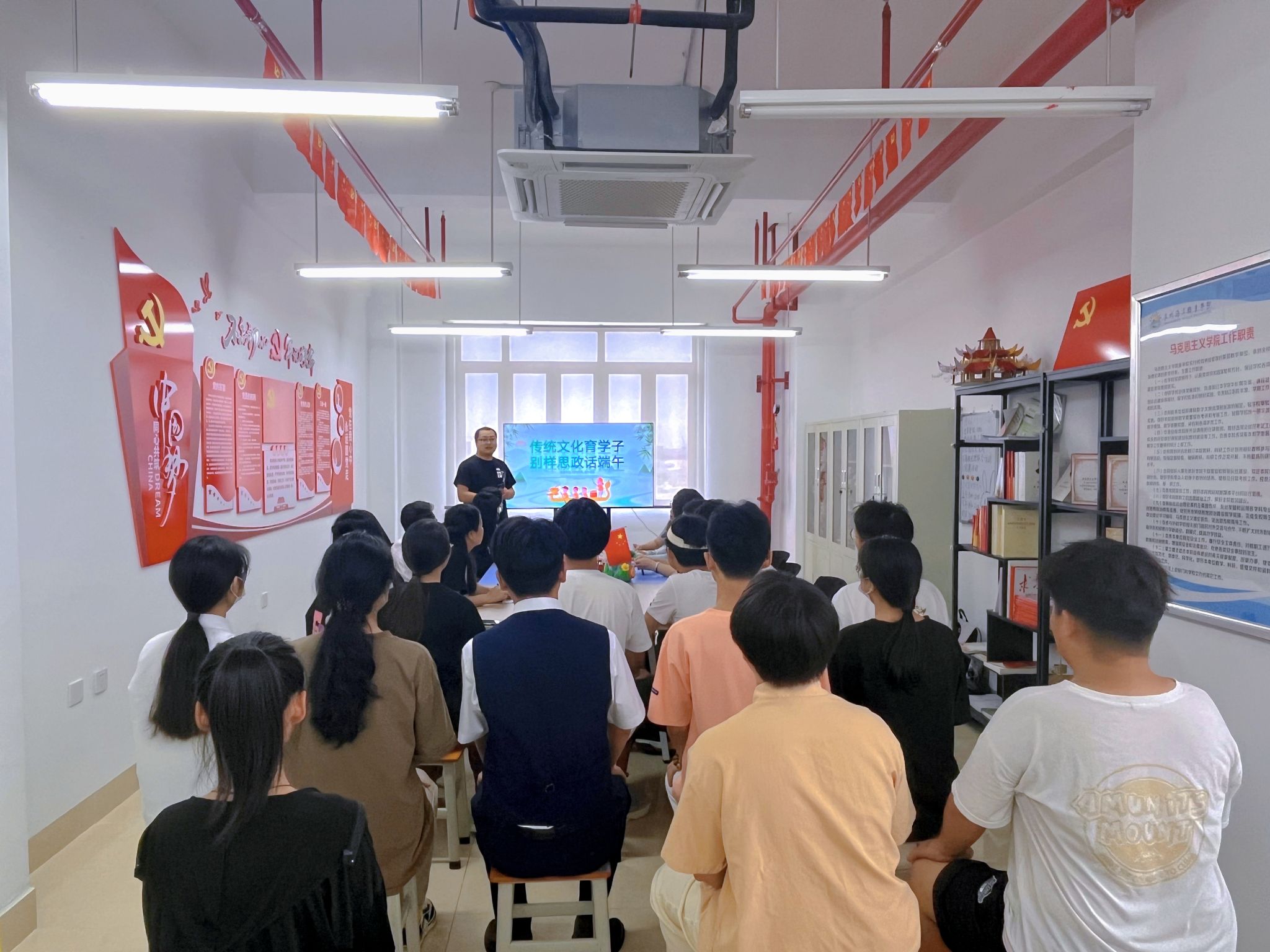 2023年6月14日,在端午佳节来临之际,我院党支部在图书馆西侧四楼党员活动室开展“传统文化育学子 别样思政话端午”主题党日活动,旨在于深入学习贯彻习近平总书记在文化传承发展座谈会上的重要讲话精神,坚定文化自觉和文化自信,传承中华优秀传统文化。学院全体教职工以及大一学生代表参与活动。