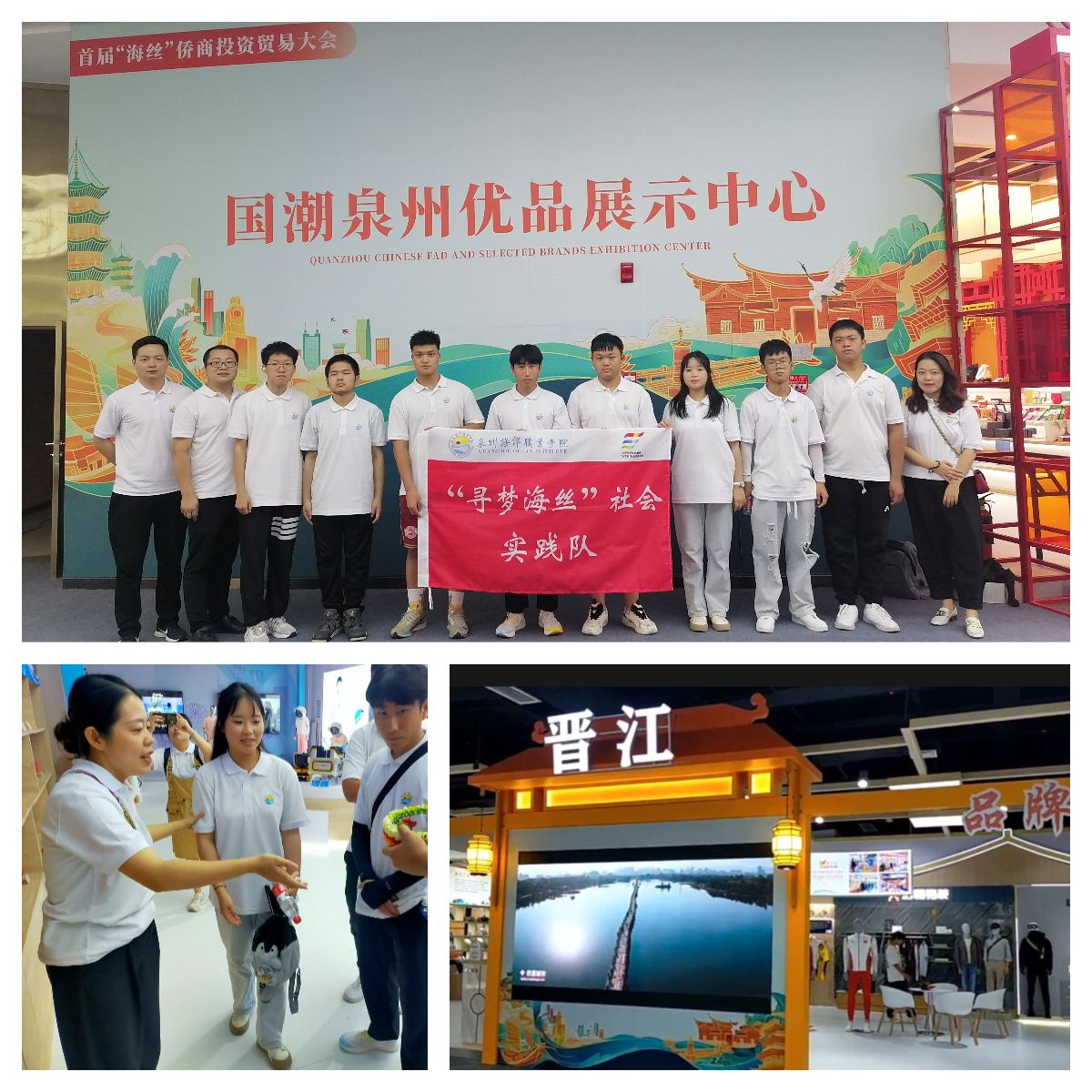 同日下午,组织实践队前往泉州城市产业会客厅暨国潮泉州优品展示中心参观泉州各县市融入海丝文化元素的文创产品展。同时,通过主动访谈、调查等方式调研海丝文化在今天的新创造、新融合和新业态。