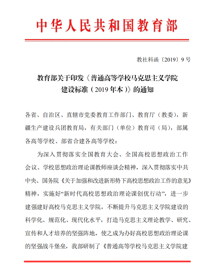附件:教育部关于印发《普通高等学校马克思主义学院建设标准(2019年本)》的通知