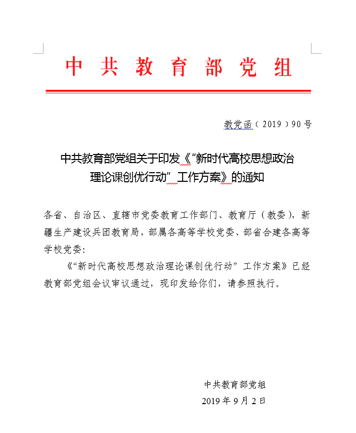附件:中共教育部党组关于印发《“新时代高校思想政治理论课创优行动”工作方案》的通知