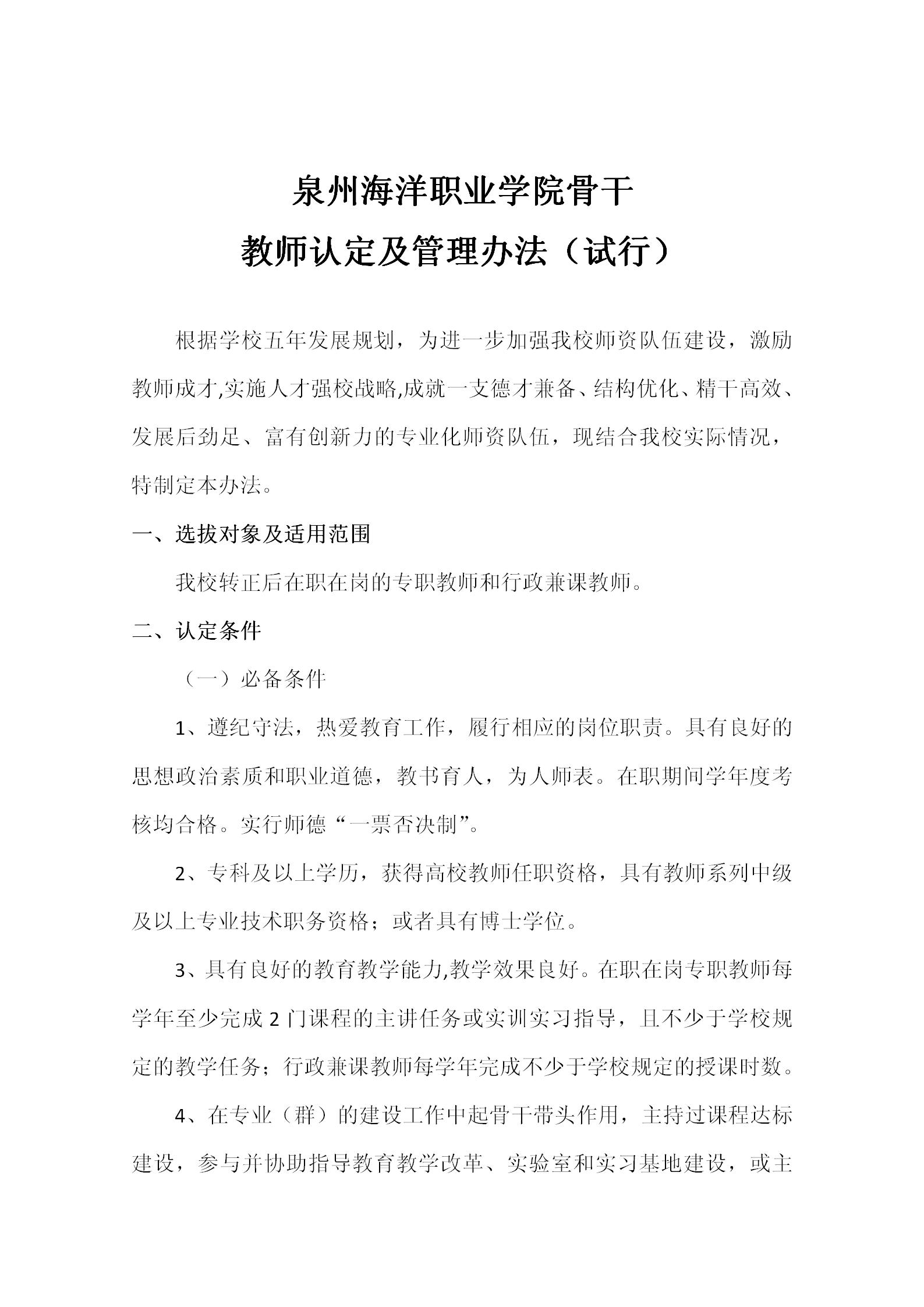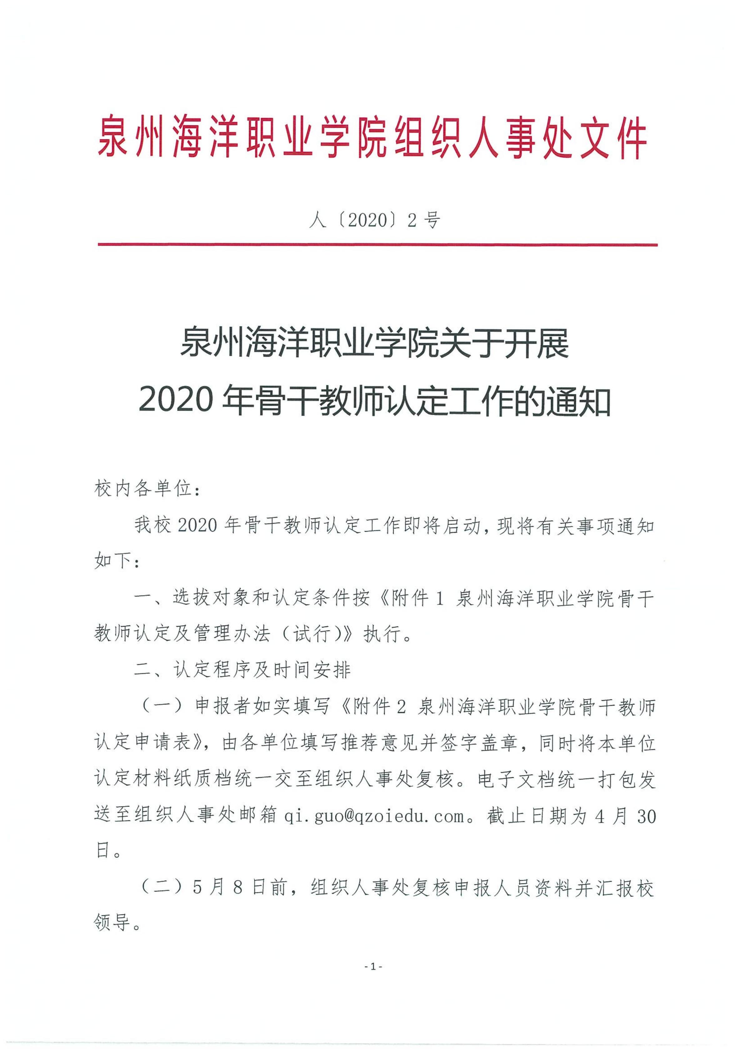 泉州海洋职业学院关于开展2020年骨干教师认定工作的通知