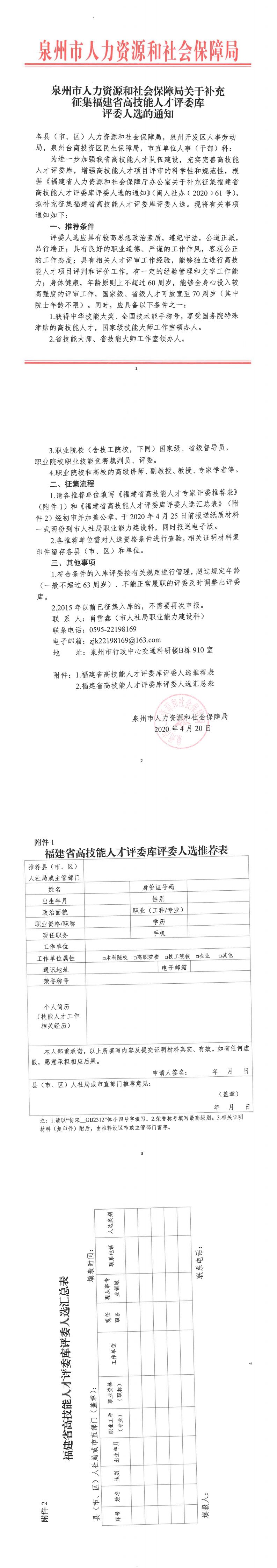 关于补充征集福建省高技能人才评委库评委人选的通知