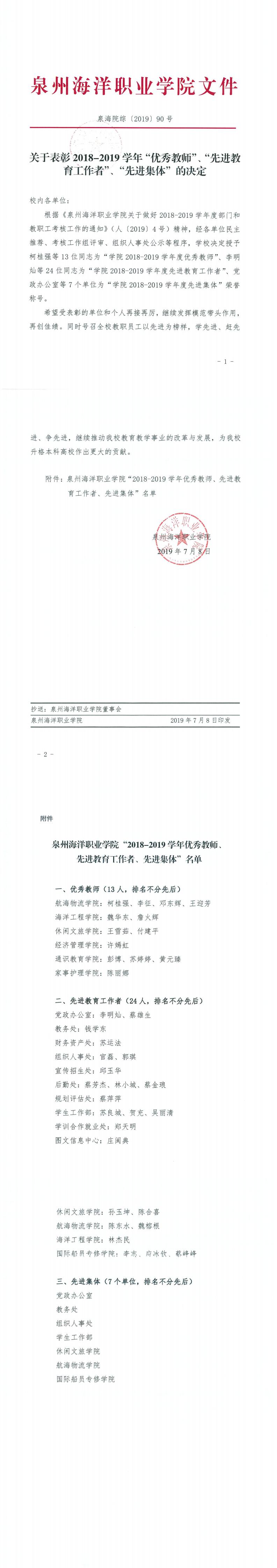 关于表彰2018-2019学年“优秀教师”、“先进教育工作者”、“先进集体”的决定
