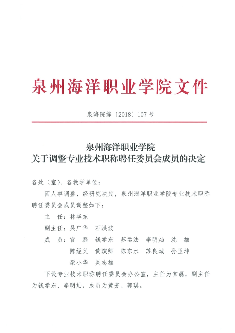 关于调整专业技术职称聘任委员会成员的决定
