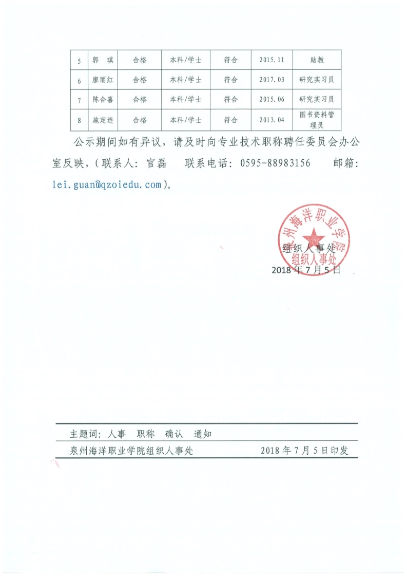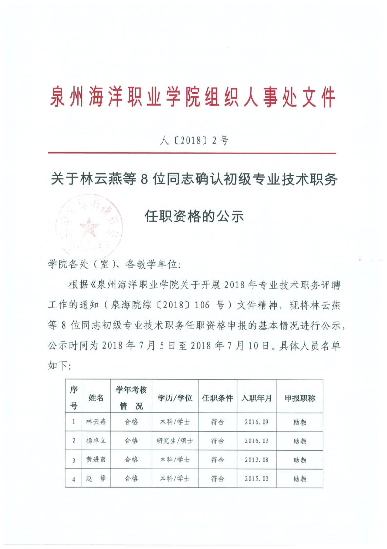 关于林云燕等8位同志确认初级专业技术职务任职资格的公示
