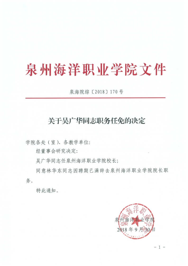 泉海院综[2018]170号 关于吴广华同志职务任免的决定