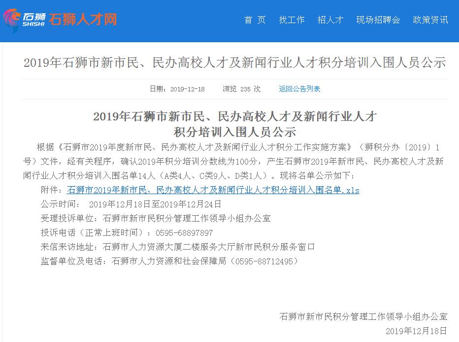 恭喜我校张朱玲、彭博、王志华、官磊四位老师入围2019年石狮市民办高校人才购房补助,彭博、王志华、黄元臻、官磊、郭琪五位老师入围2019年石狮市民办高校人才积分培训,请以上老师继续关注后续确认和具体申请事宜,以免错过申请时限,更多信息可查询石狮人(http://www.sshr.net/)。