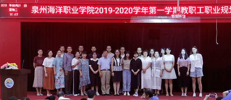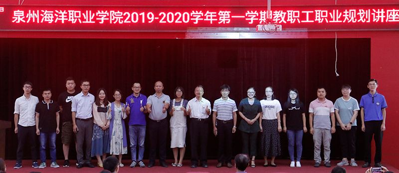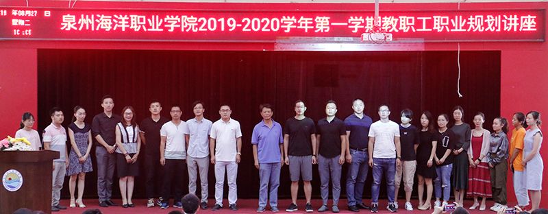 新闻中心讯(廖丽红供稿 党政办编辑)2019年8月27 日,我校举办泉州海洋职业学院2019—2020学年第一学期教职工职业规划讲座,由柏定国校长为全体教职工作职业生涯规划辅导,校领导及全体教职工参加本次讲座。本次讲座由组织人事处官磊处长主持。
