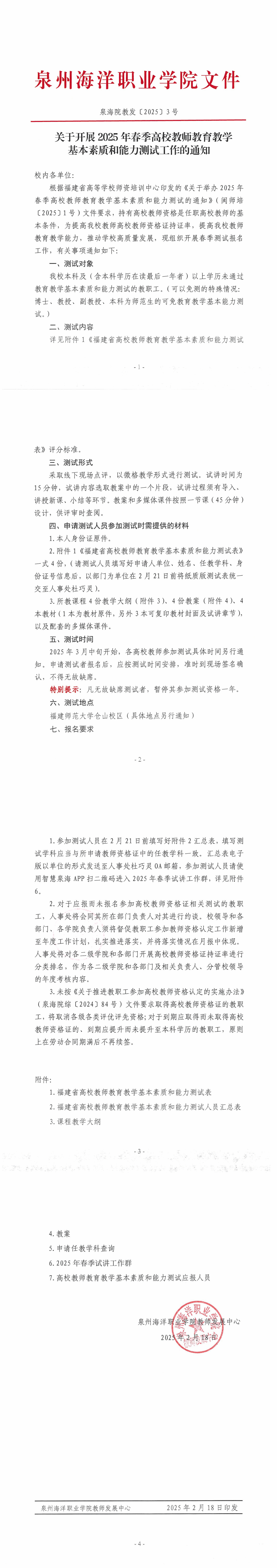 关于开展2025年春季高校教师教育教学基本素质和能力测试工作的通知