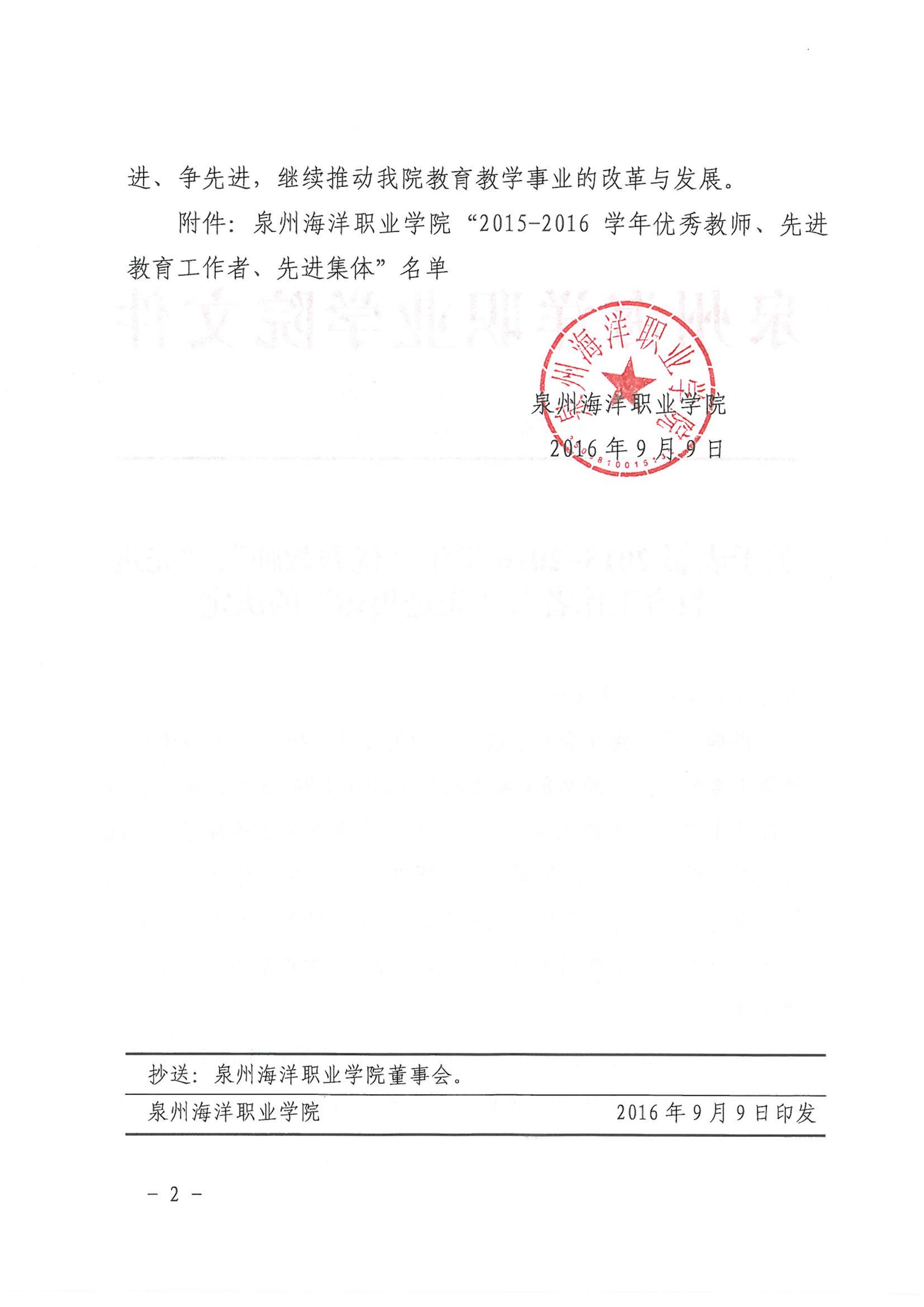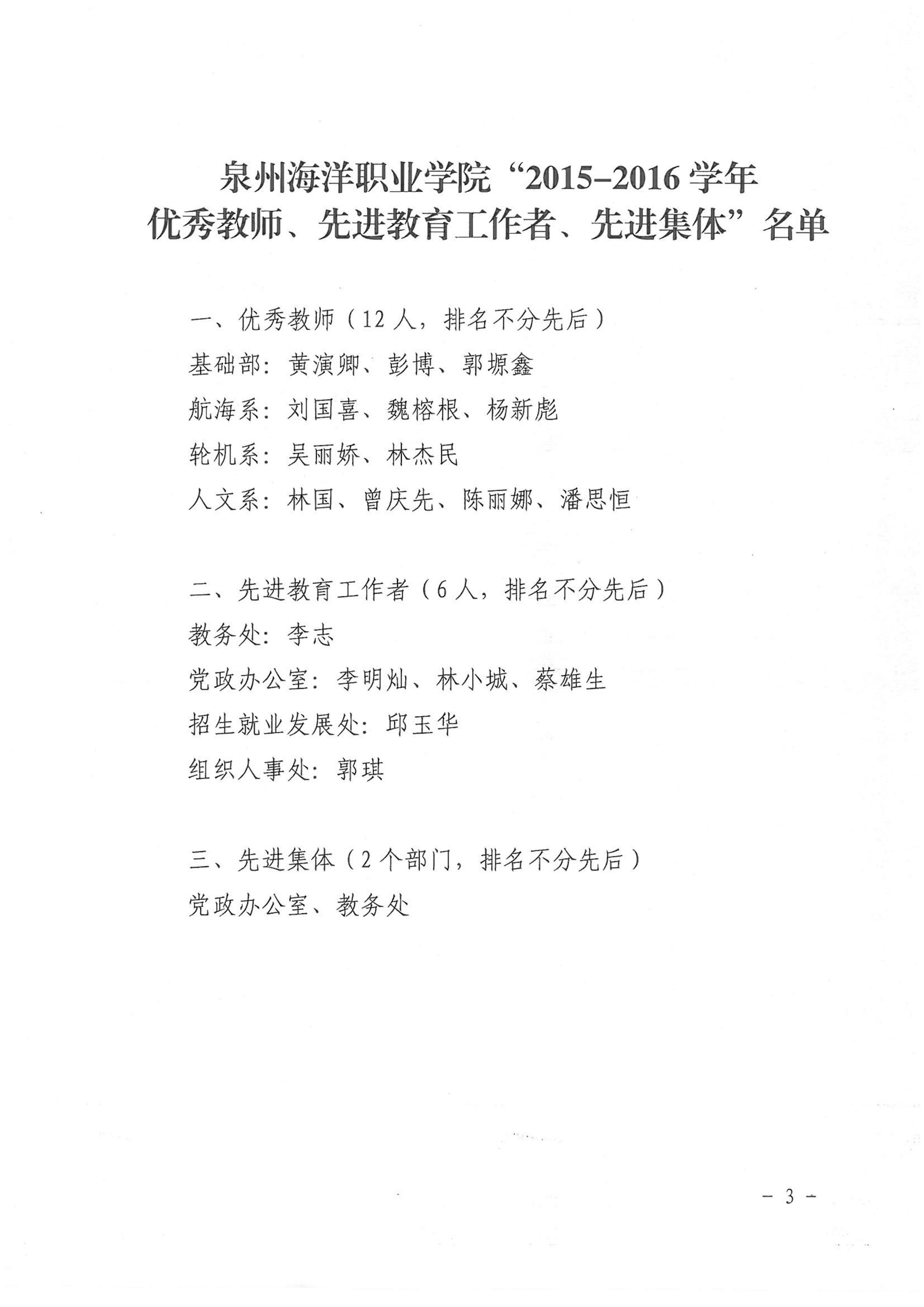 关于表彰2015-2016学年“优秀教师”、“先进 教育工作者”、“先进集体”的决定