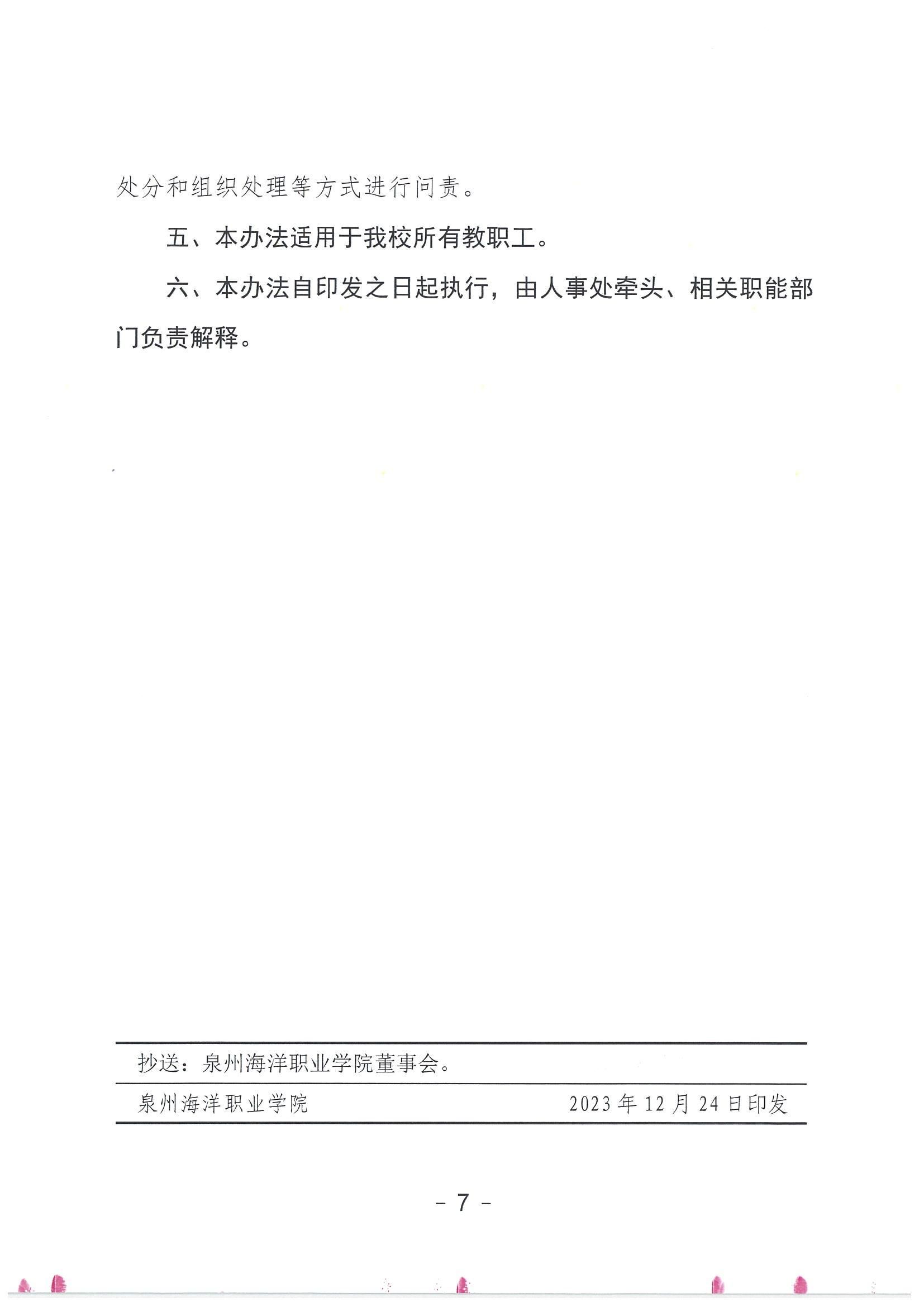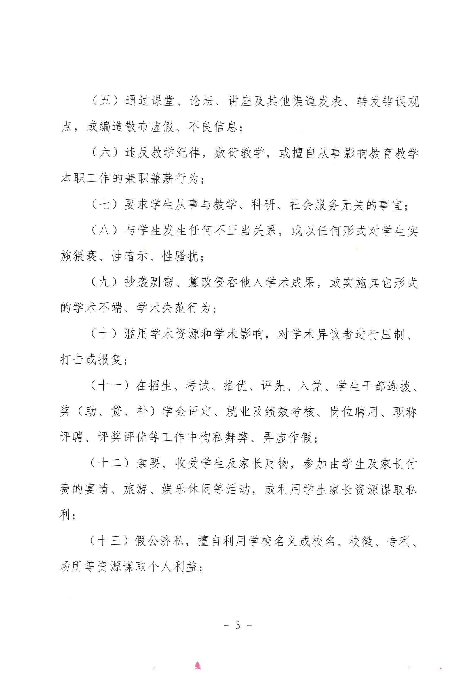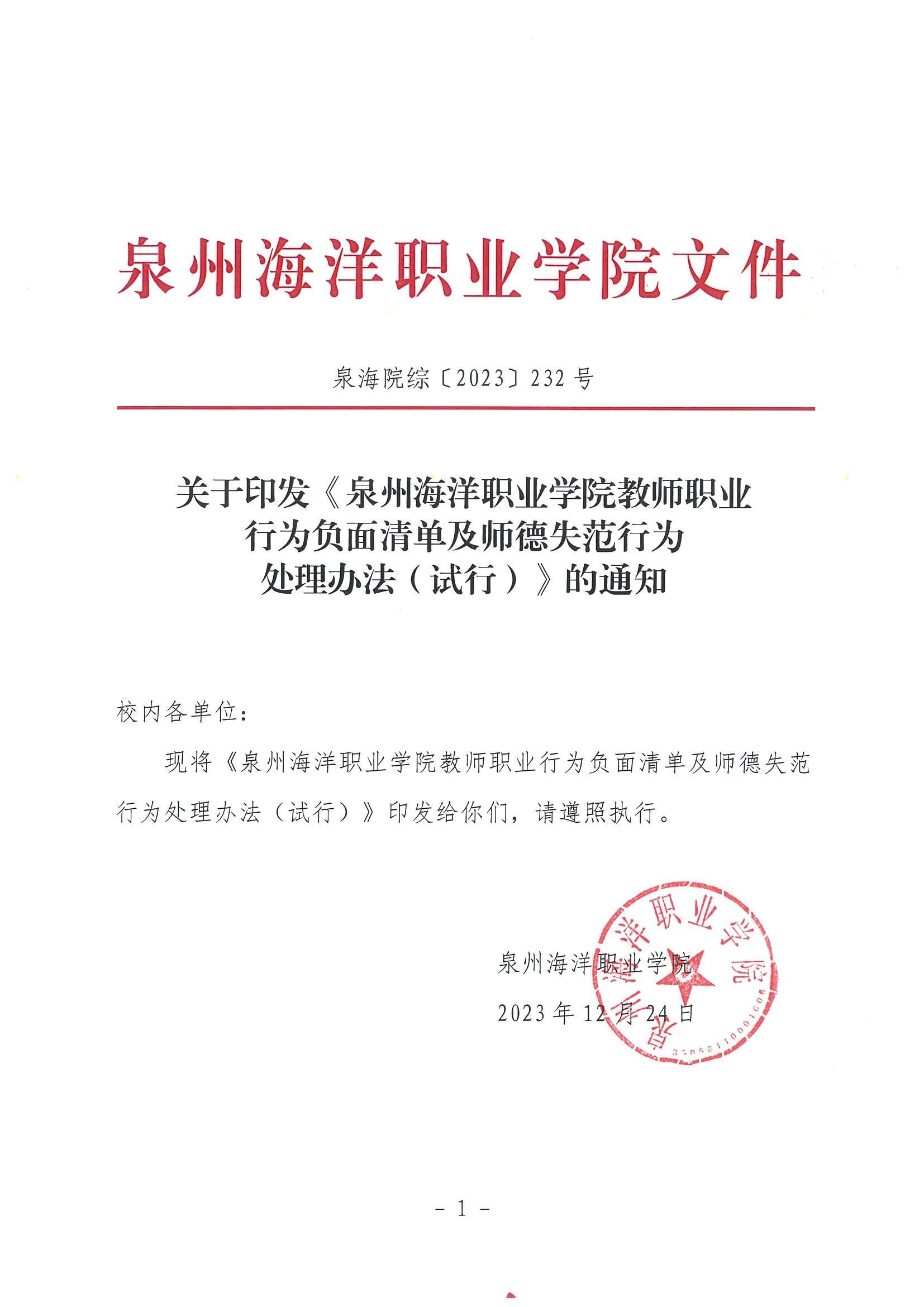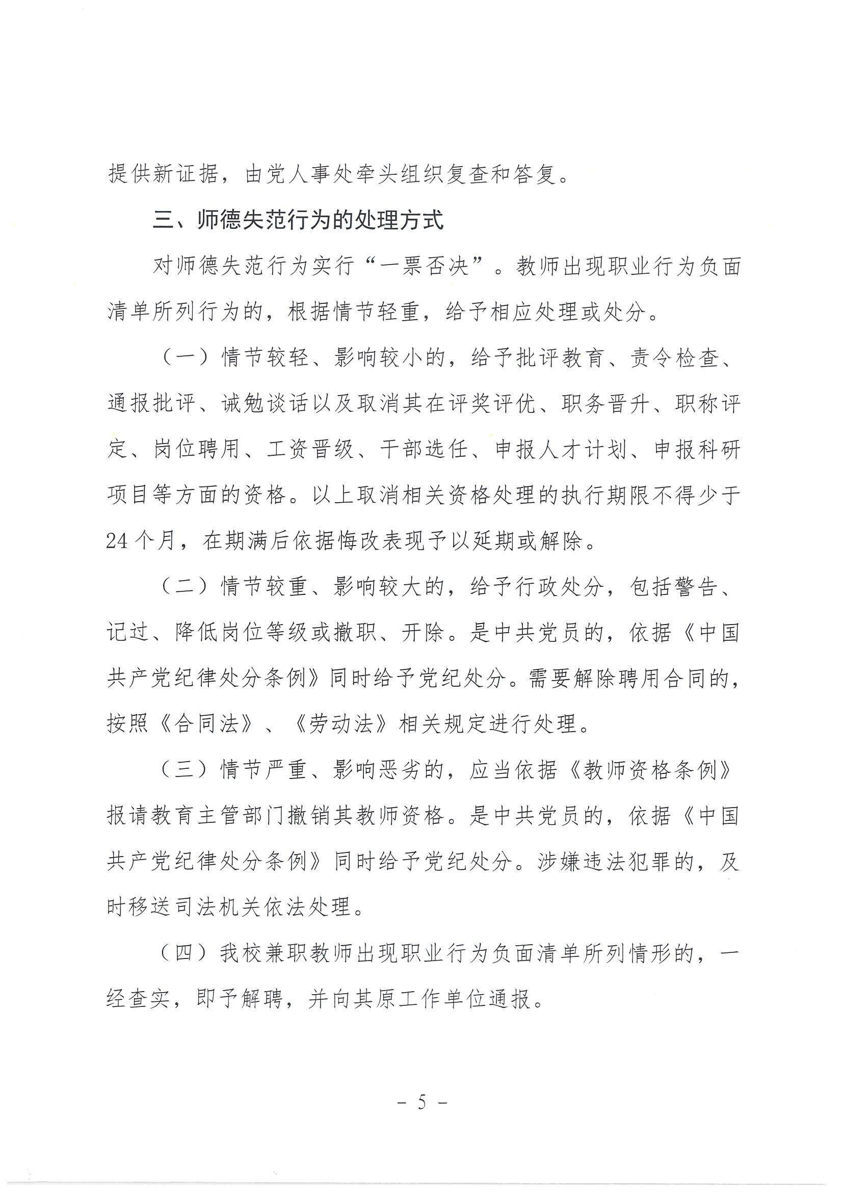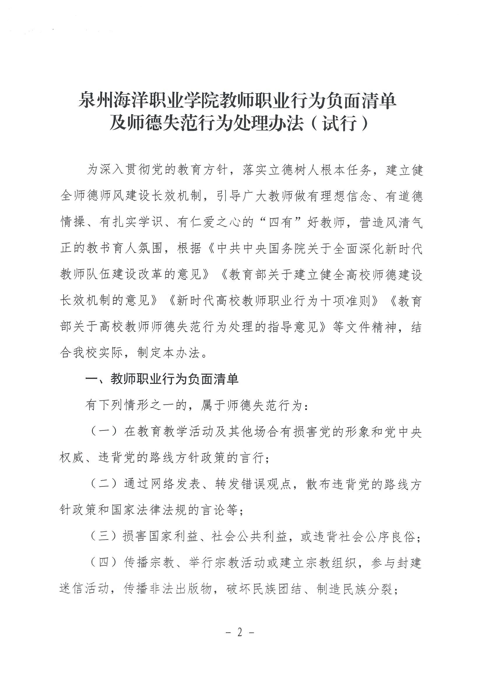 泉州海洋职业学院教师职业行为负面清单及师德失范行为处理办法(试行)