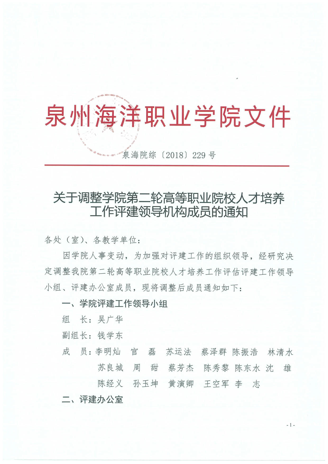 关于调整学院第二轮高等职业院校人才培养工作评建领导机构成员的通知
