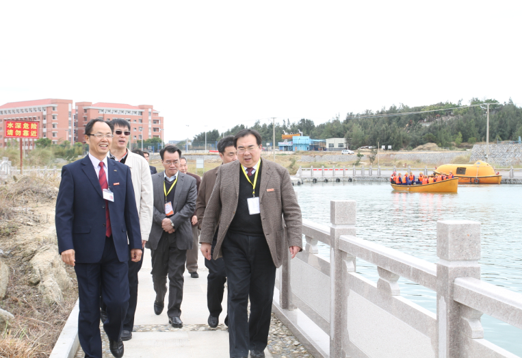 评估汇报会结束后,专家组一行在学院领导及相关部门负责人的陪同下,依次参观了学院海洋文化展示厅、科技园规划展览馆、消防训练中心、体育场、水上训练中心、游泳池、素质拓展基地、轮机实训中心、航海文化墙以及海边实训基地,并在正大门航海文化广场亲切合影留念。