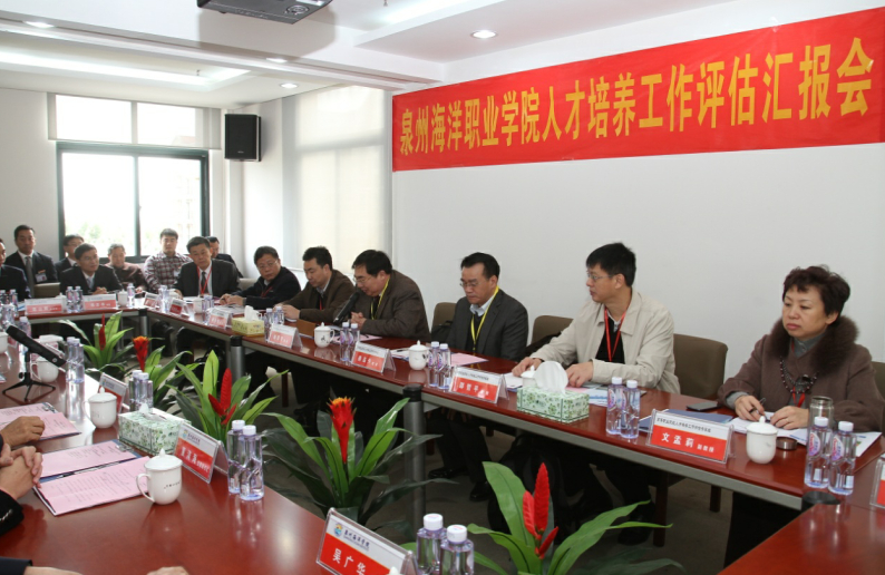 黄水源院长重点就学院的人才培养工作向专家组做了认真详实的汇报。在工作报告中,黄水源院长简要地介绍了学院建校四年多来的发展历程和取得的成绩,并从十一个部分全面汇报了学院的办学成效。最后,他客观地指出了学院存在的问题,并表示学院将以本次迎评为契机,继续深化教学改革、扩大办学规模、提高办学水平。他坚信,在各级领导和各位专家的关心支持下,学院的师生员工一定以十倍的信心、百倍的努力,开创人才培养工作和各项事业的新局面,为海洋经济建设和蓝色产业发展培养更多高素质技术技能型人才!