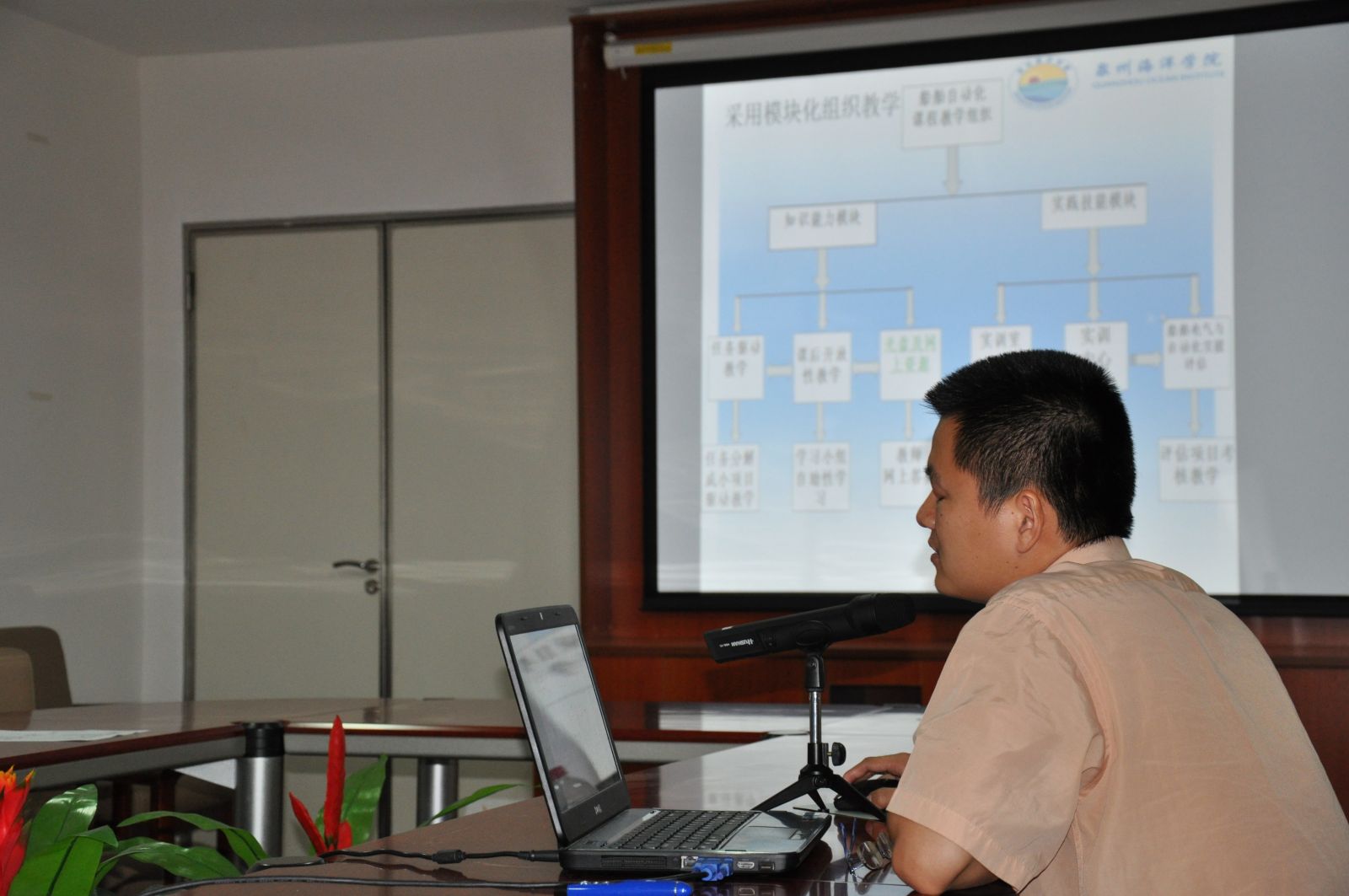 本次说课评委由教学副院长、各系部主任和评建顾问组成。说课活动共分为两部分,首先邀请了评建顾问陈文东老师对 “课标、模块、说课”等疑惑问题进行解答,期间先由陈老师对“课标”、“说课”等内容进行简要阐述,而后由各位在场教师对自身疑惑进行提问,并由陈老师进行解答。随后航海教研室的胡燕红和余华、轮机教研室的曾尧松和黄思来、国航教研室的曾庆先、英语教研室的梁小华和郭塬鑫等7位老师陆续展示了其精心准备的说课内容。各教研室教师在说课结束后评委组分别进行评委点评讨论,大家对本轮教师说课情况发表了个人的意见和建议,并对学校迎评以来所开展的说课活动的感受、收获与疑惑进行热烈的讨论交流。通过第三轮说课活动,进一步完善课程标准,全院老师对所任教的课程有了更深入的了解,为迎接评估做好了更充分的准备。本次活动的顺利开展,不仅为我校“迎评促建”工作起到良好的推进作用,而且对说课教师自身素质的提高提供了机会,也给新任教师在教学设计方面的培养提供了平台。