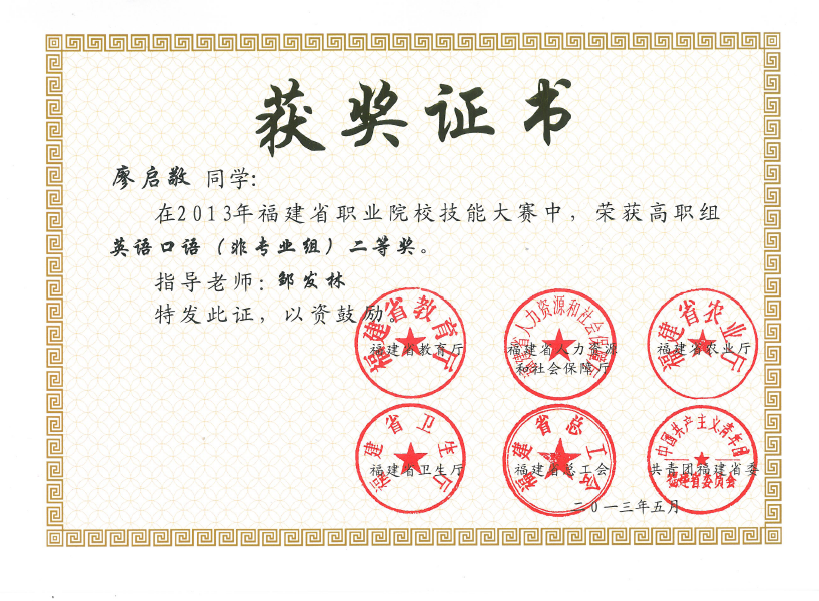 我院在2013年福建省职业院校技能大赛上喜获佳绩