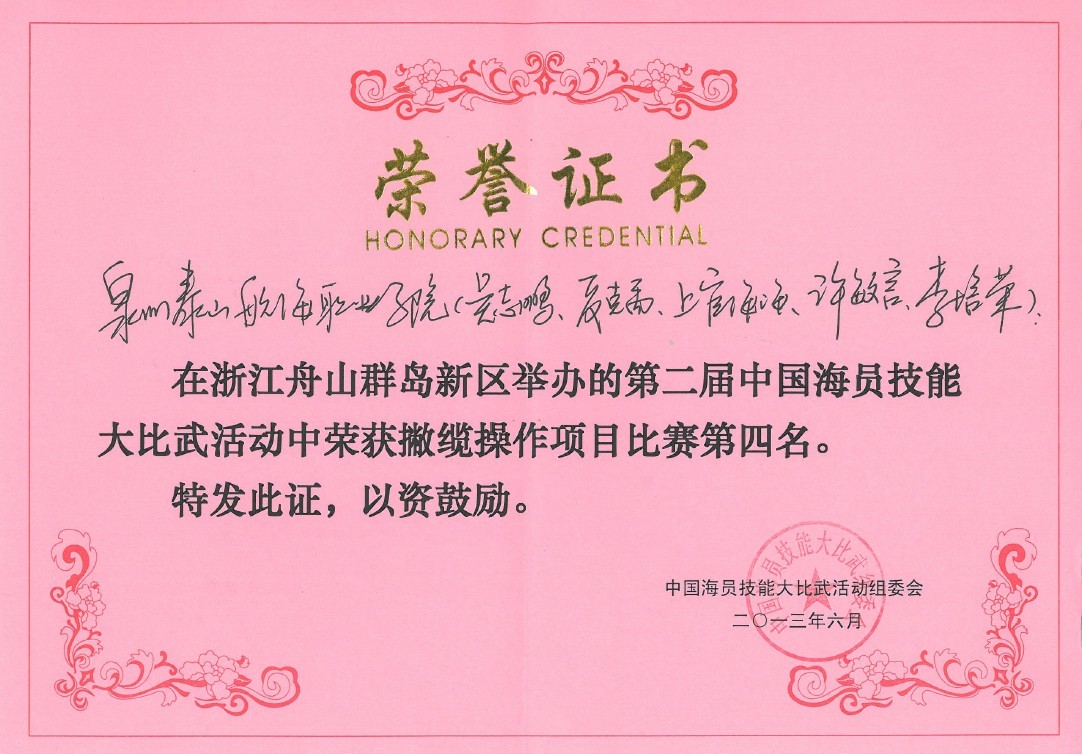 第二届中国海员大比武荣获撇缆操作项目比赛第四名