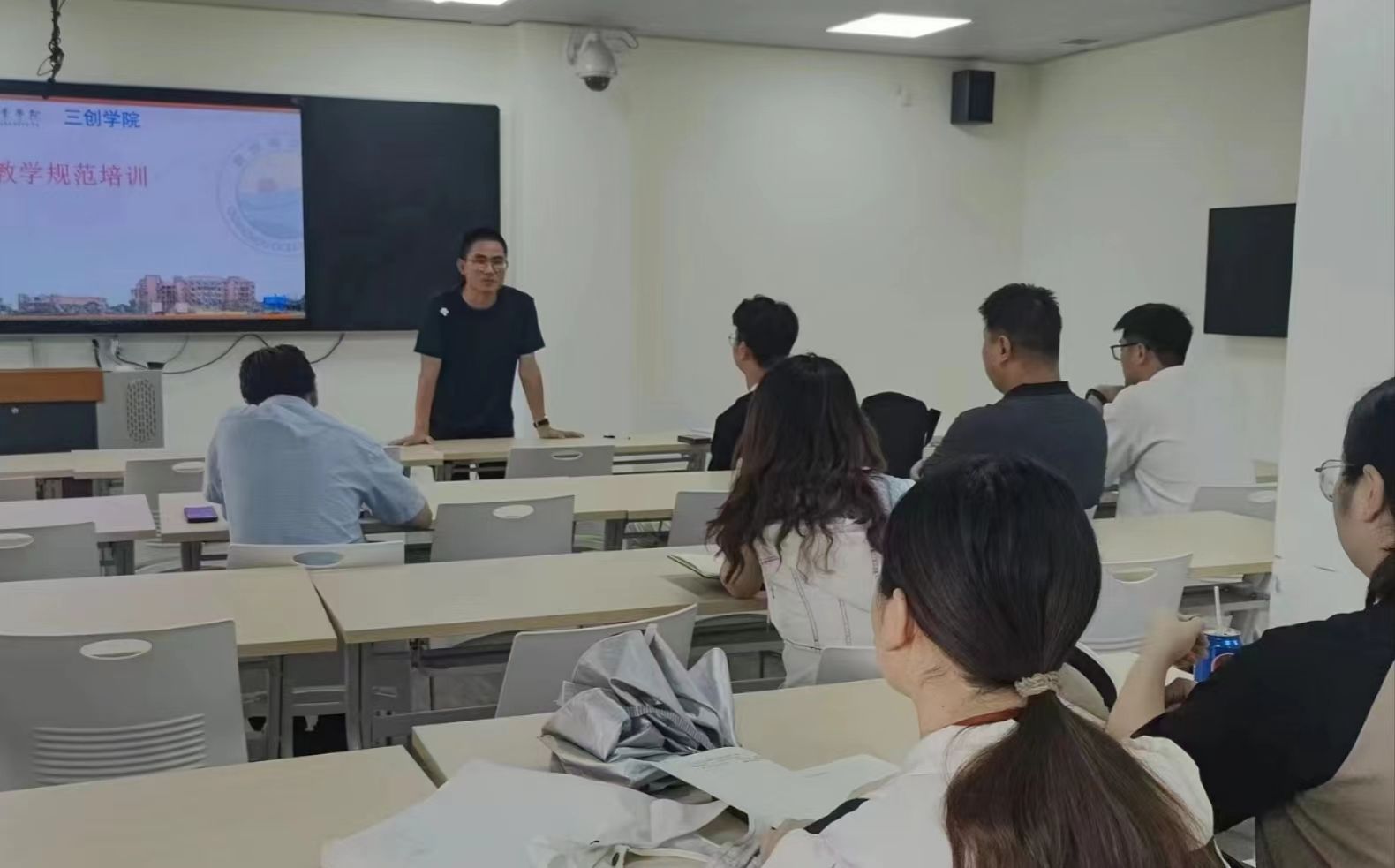 为了有效推进新学期的教育教学内容,确保新学期任课教师顺利开展教学工作,三创学院于2023年9月13日上午在行政楼2楼智慧教室举行本学期教学技能培训。此次培训由学院副院长廖贵强主讲,学院任课教师参加本次培训。