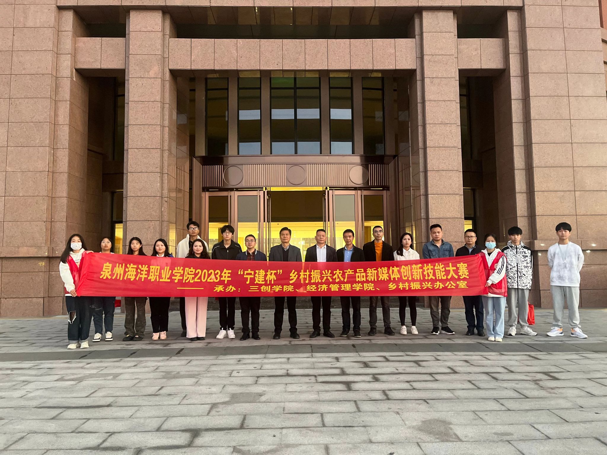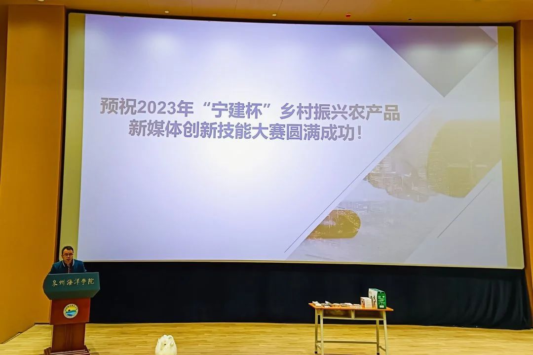 2023年12月14日晚,2023年“宁建杯”乡村振兴农产品新媒体创新技能大赛启动仪式于我校图书馆二楼报告厅顺利举行。厦门独步天下集团有限公司总经理林明椿、运营总监曾令丰、市场总监施然庆、泉州宁建闽宁协作供应链集团有限公司行政总监许纤纤、销售总监施晓宾、经济管理学院院长张恒中、三创学院副院长周甜、对外合作部副部长蒋滨滨、经济管理学院党支部副书记林钊、对外合作部就业创业中心主任黄海斌、三创学院综合办公室主任郑天明出席。活动由经济管理学院副院长黄金帅主持。