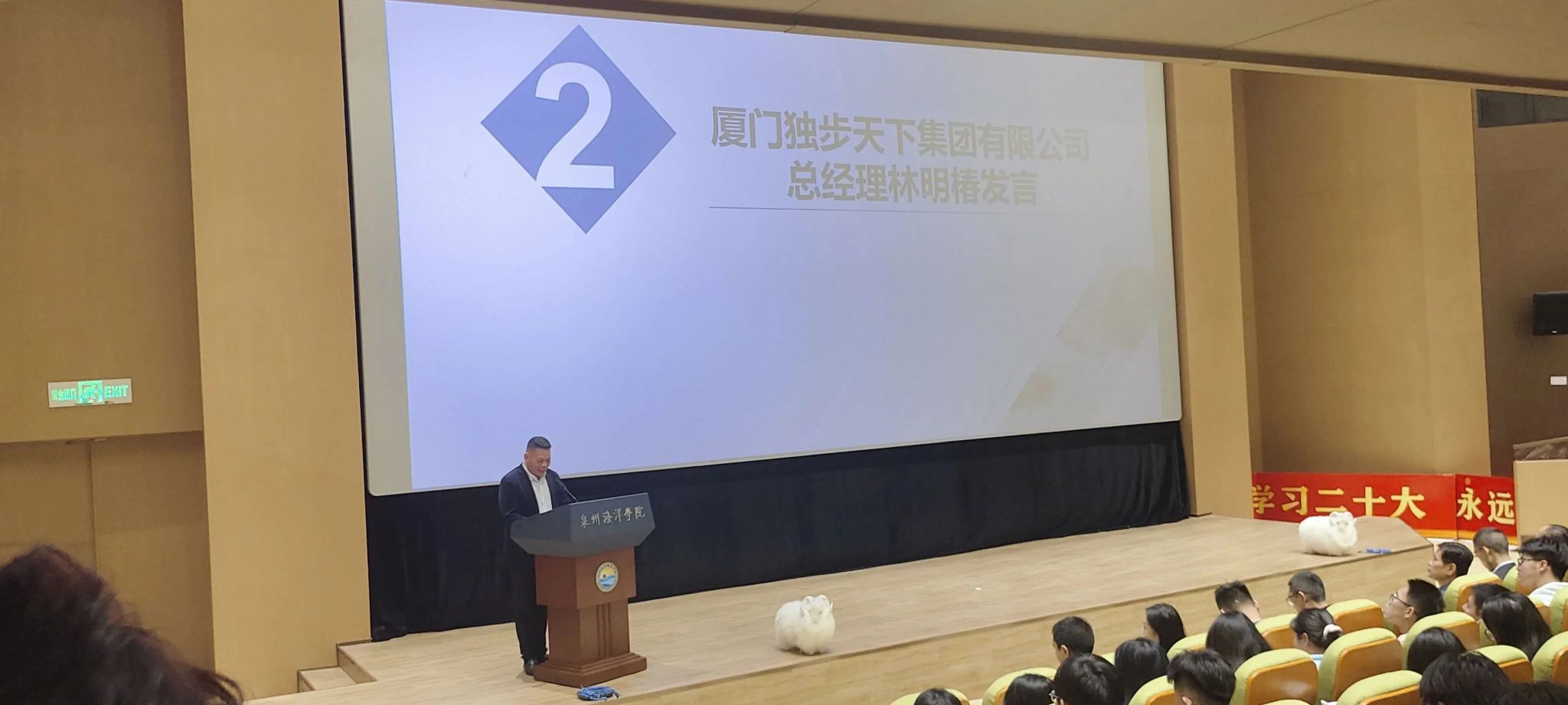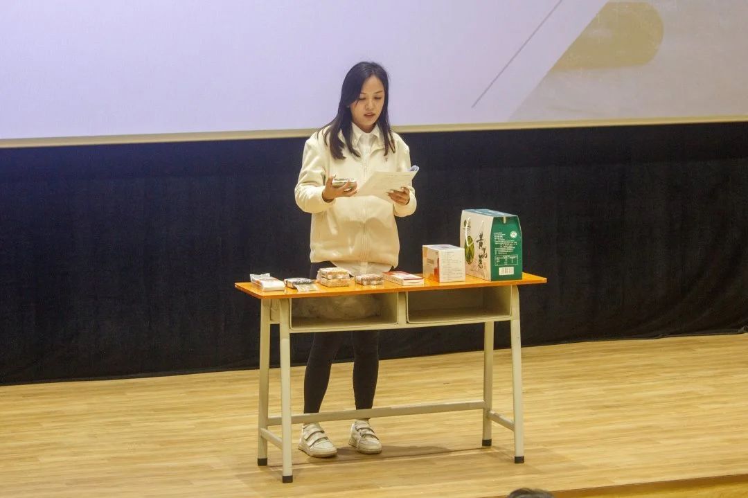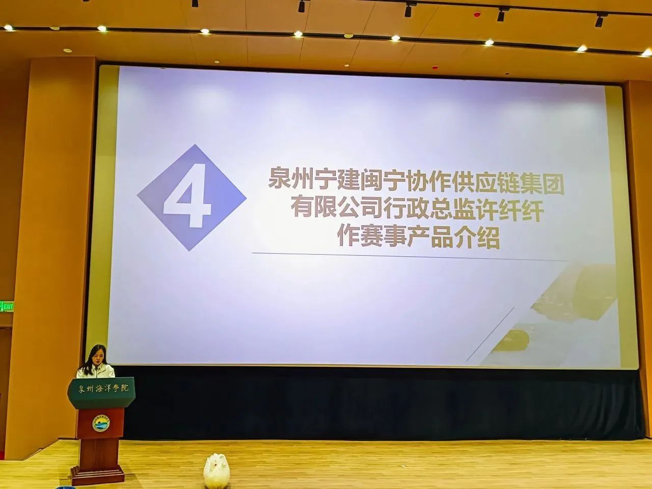 泉州宁建闽宁协作供应链集团有限公司行政总监许纤纤讲解宁夏产品的环境、赛事的产品,物流发货形式。同时她还向同学们抛出了关于产品的一些问题,现场气氛活跃,同学们积极回答,获得大赛的小礼品。