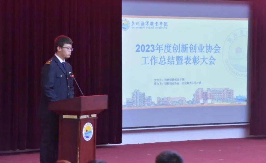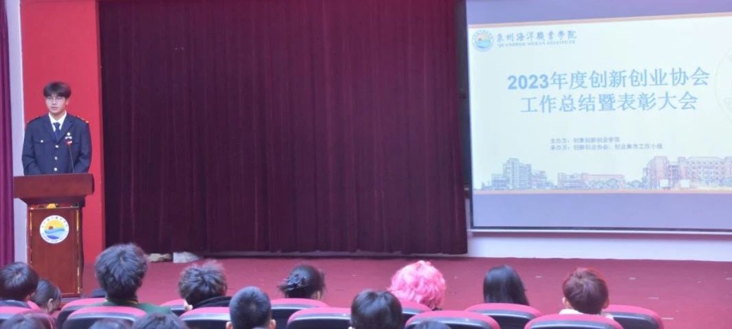 12月26日,泉州海洋职业学院2023年度创新创业协会工作总结暨表彰大会在2204报告厅隆重举行。出席大会的领导和嘉宾有:海洋工程学院书记兼三创学院副院长周甜,三创学院办公室主任郑天明,海洋工程学院团委书记黄明芳,三创学院创新创业导师叶小燕、吴鸿婷,三创学院教师洪曼玲,创新创业协会历届负责人蔡思思、董宏钊、魏艾洁,以及社联代表、学校各社团代表。