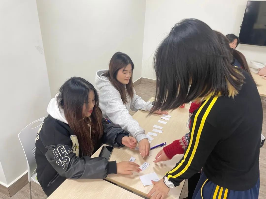 在 “你画我猜” 环节中,同学们两两一组,比划的一方手舞足蹈、妙趣横生,通过各种生动的肢体语言传达词语含义,猜词的同学则全神贯注、积极思考,双方配合默契,现场欢笑声此起彼伏,充分展现出大家的想象力与沟通协作能力,也让整个氛围轻松愉悦起来。
