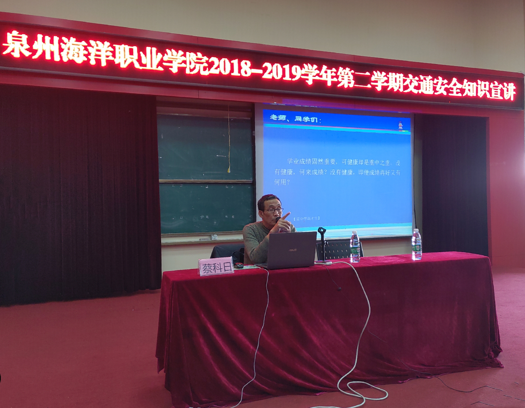 此次讲座主要以交通安全知识来展开讲座,交通环境、交通法规、事故后怎么做等几个方面进行讲述,讲座结合生活中的交通违规案例进行分析,用血的事实深入分析违反交通规则、违背交通道德带来的种种危害,强调在座的每一位听众要丰富交通安全知识,增强防范意识,遵守交通安全法规,提高自我保护能力。