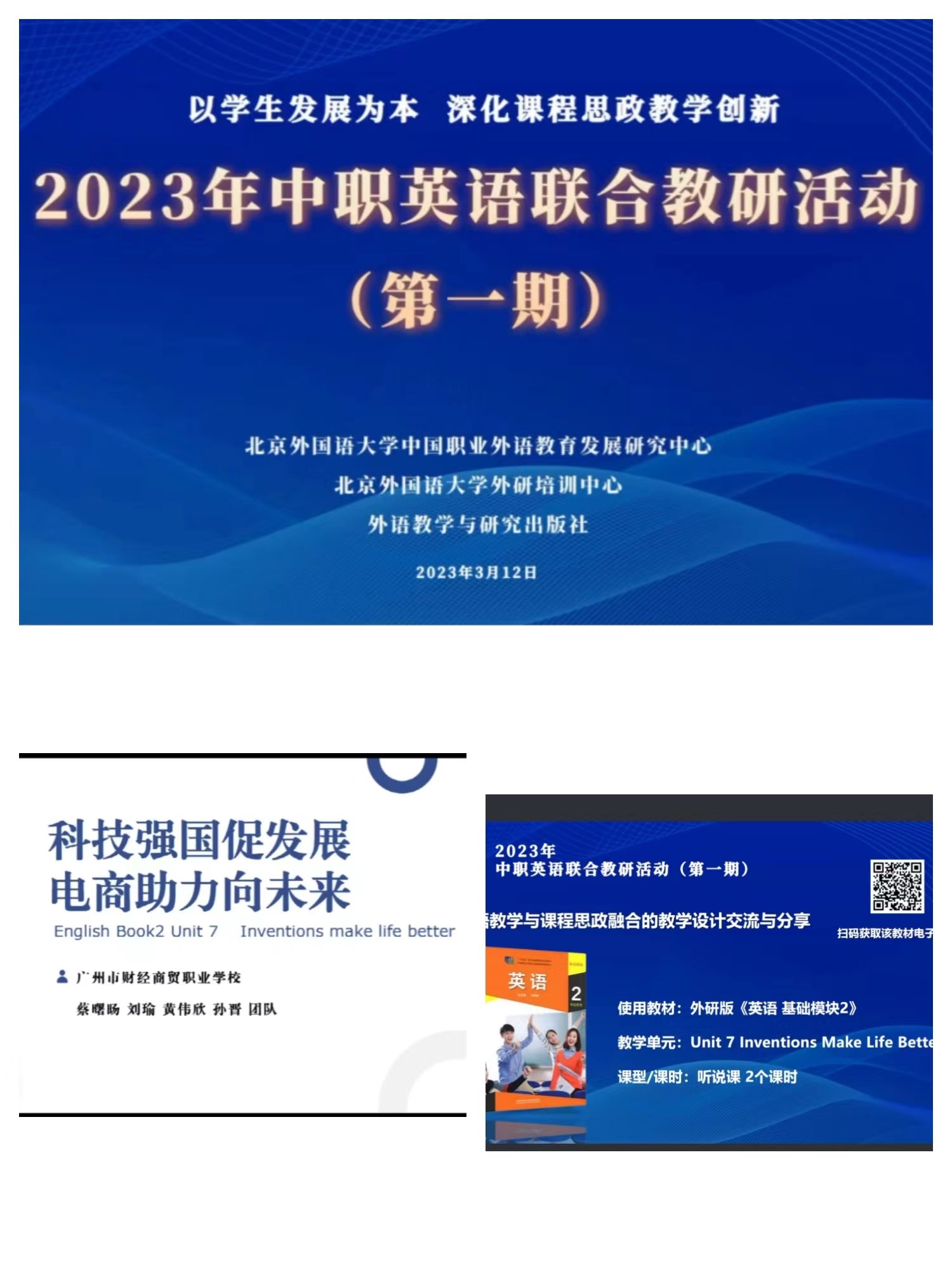 又逐春风起,万物焕新生。为深入贯彻党的二十大精神和习近平总书记关于职业教育的重要指示,全面落实中办、国办印发的《关于推动现代职业教育高质量发展的意见》《关于深化现代职业教育体系建设改革的意见》,落实落地课程思政要求,深化教师教材教法改革,我院英语教研室组织讲授五年专英语课程的教师于3月12日上午参加了北京外国语大学中国职业外语教育发展研究中心、北京外国语大学外研培训中心举办的线上中职英语联合教研活动。