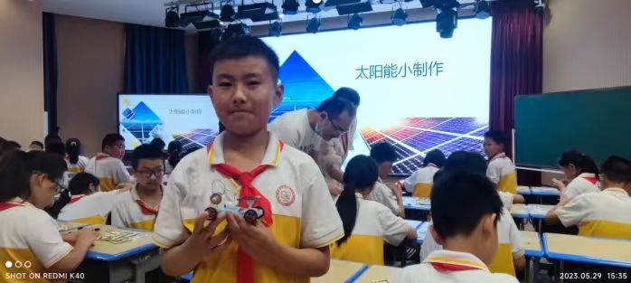 随后,同学们进行了太阳能相关的制作。吴老师详细地向大家介绍了太阳能的工作原理及制作步骤。在寓教于乐的活动中,每一位同学都积极动脑,勇于实践,体验到了科学的魅力。