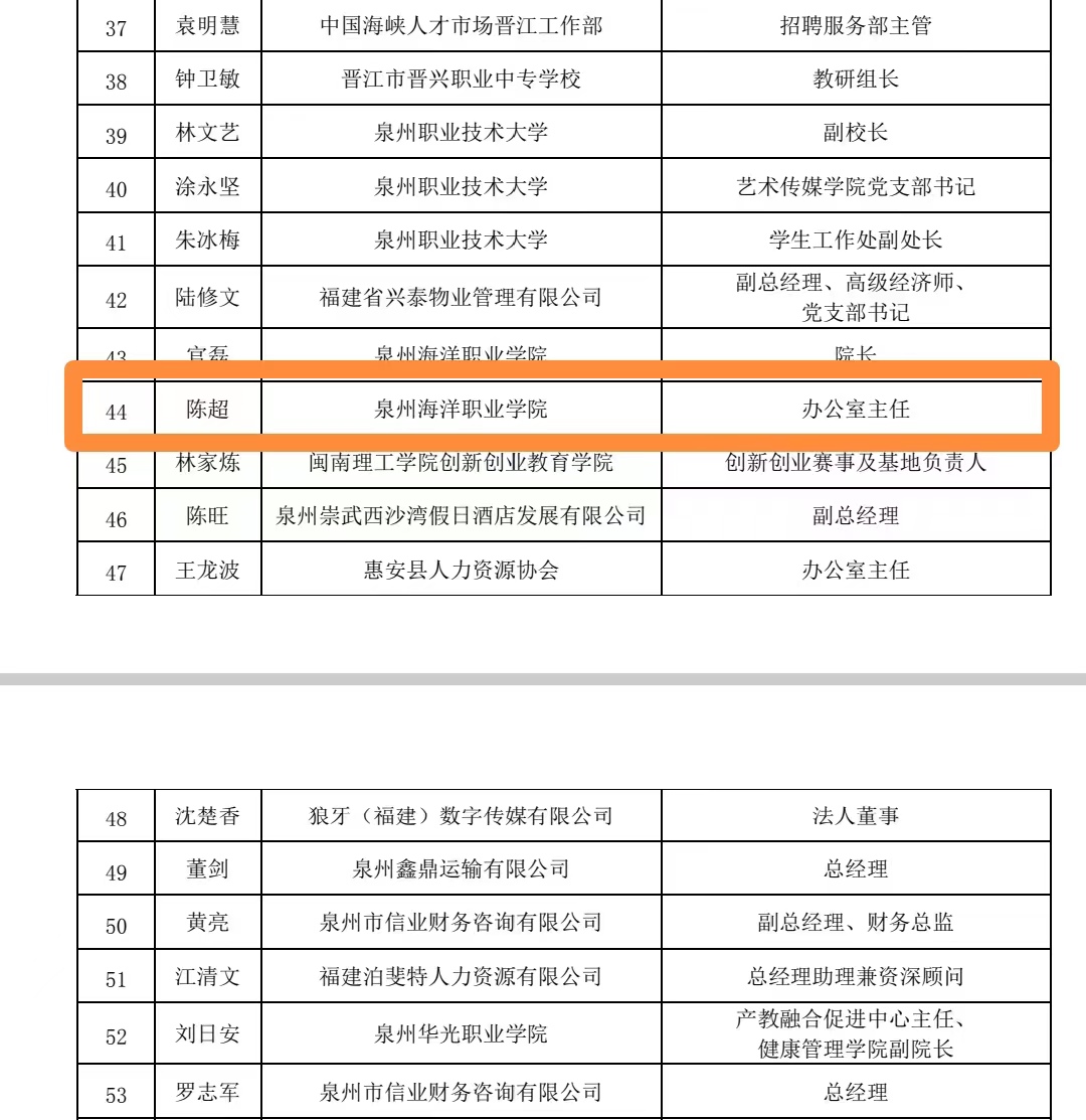 近日,经我校推荐,福建省退役军人事务厅层层选拔,我院陈超老师被福建省退役军人事务厅聘请为第二批福建省退役军人就业创业指导团队专家成员。